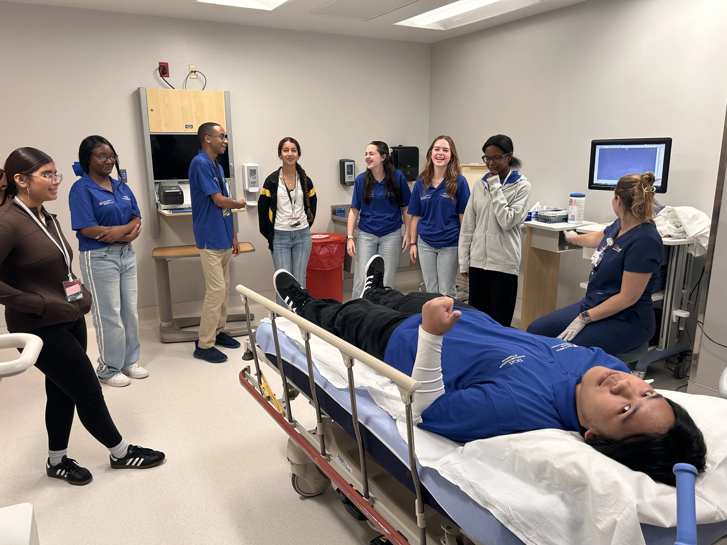 Imagine walking through a hospital and seeing a group of young high school students learning about the medical field. This is the Doctors of Tomorrow program funded by the University of Florida Shands Health. The Doctors of Tomorrow club helps deepen these students’ understanding of the medical field and prepares them to pursue careers in health care.